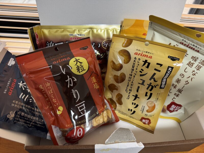 有馬芳香堂さんは大正10年創業のナッツ・豆菓子・ドライフルーツを取り扱うメーカーだそうです。