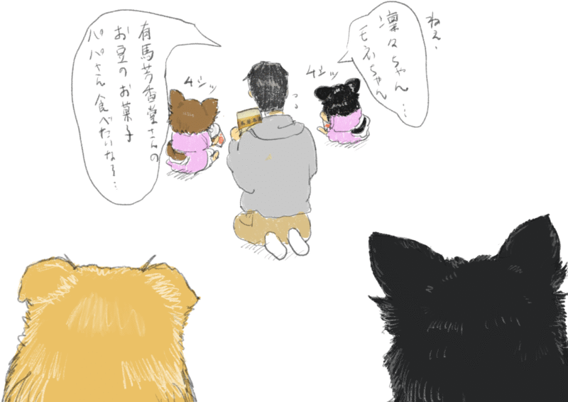 そんな有馬芳香堂さんのことをインスタにあげたら、凛々ちゃんパパさんが行ってみたいな〜と行っていて、凛々ちゃんたちはパパさんのためにお使いに行ってくれるだろうか・・・と考えたら、なんか行ってくれなそう🤣と思って・・・。