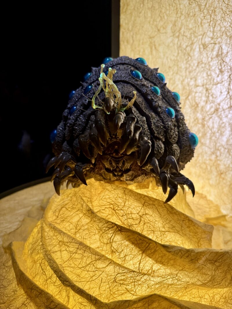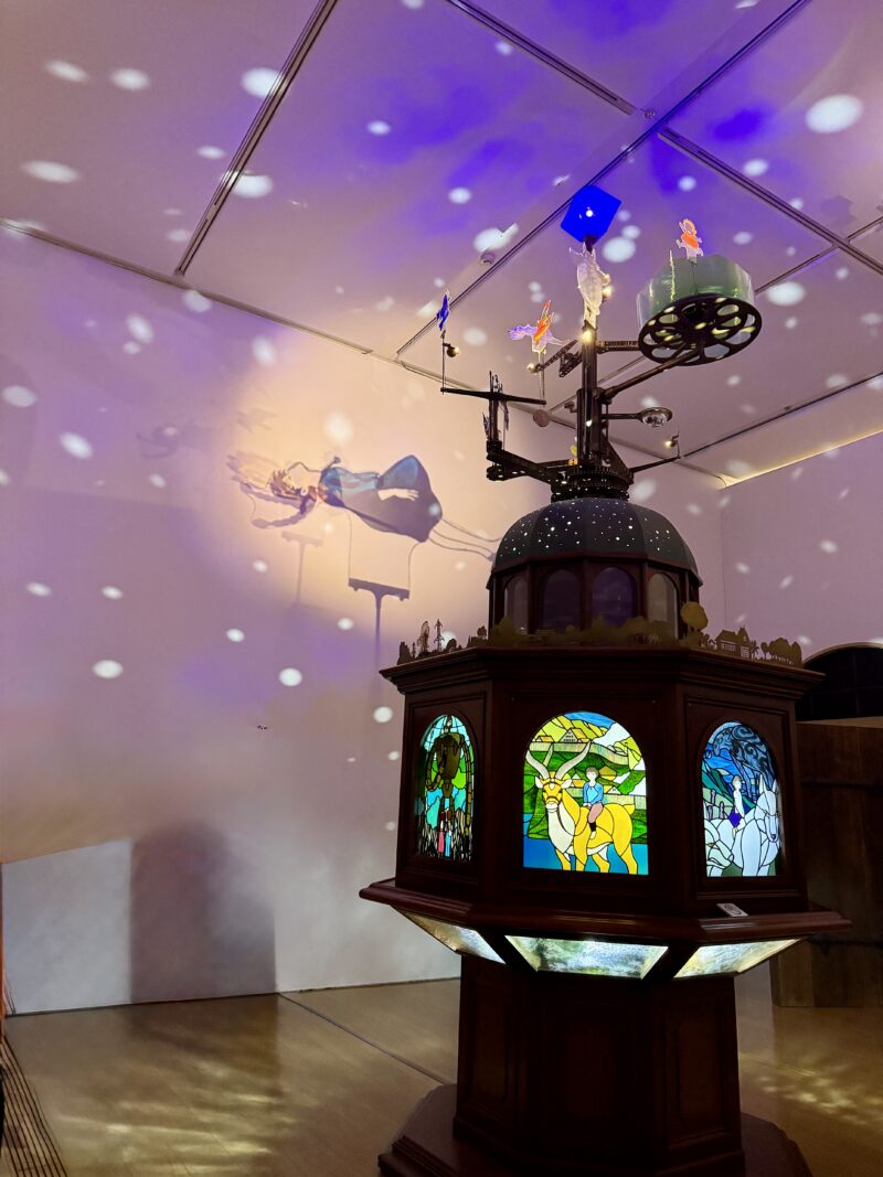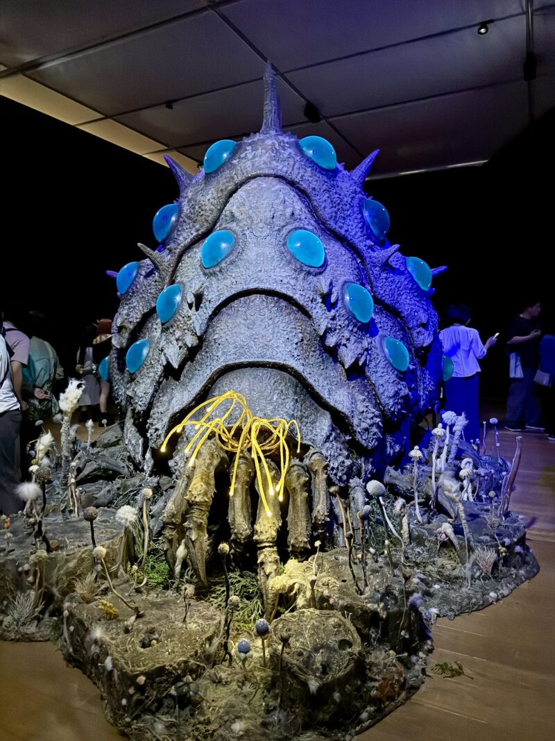 写真のようなオブジェ?だけじゃなくて、これまでのジブリ作品の絵コンテが展示してありました。絵コンテの段階でかなりの世界観が完成していたし、やっぱり宮崎駿の絵コンテは絵コンテの時点で迫力があって引き込まれました。結構、絵コンテのまま、アニメーションになってて、最初のイメージが一番描きたいもののイメージに近いからそのままアニメになっているのかな・・・なんて思いました。