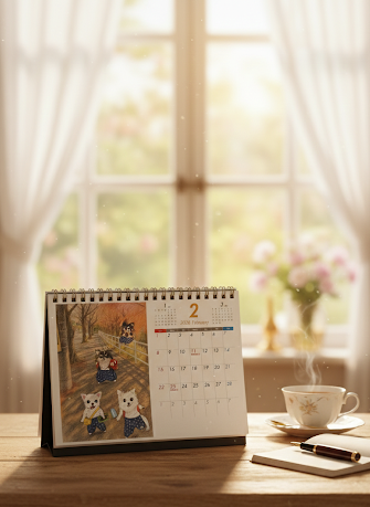 でも、実際に自分のデスクに飾ってみると……今ちょうど2月なんだけど、2月の寧々ちゃんのイラストとか、もう最高!(自画自賛)。 仕事中にふと目が合うだけで、なんか癒されます。